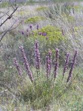 Gayfeather brings a splendid seasonal pop of color in the fall garden after many of the plants are on their last hurrah. It pairs well with Engelman's daisy and prairie zinnia which continue to bloom, and the fall blooming broom snakeweed (Gutierrezia sarothrae). Suitable for pollinator, native and xeric gardens, xeristrips and cactus gardens in well drained soil. A must for shortgrass prairie reconstructions or plains gardens. Gayfeather makes an excellent cut flower when cut early, dries well.